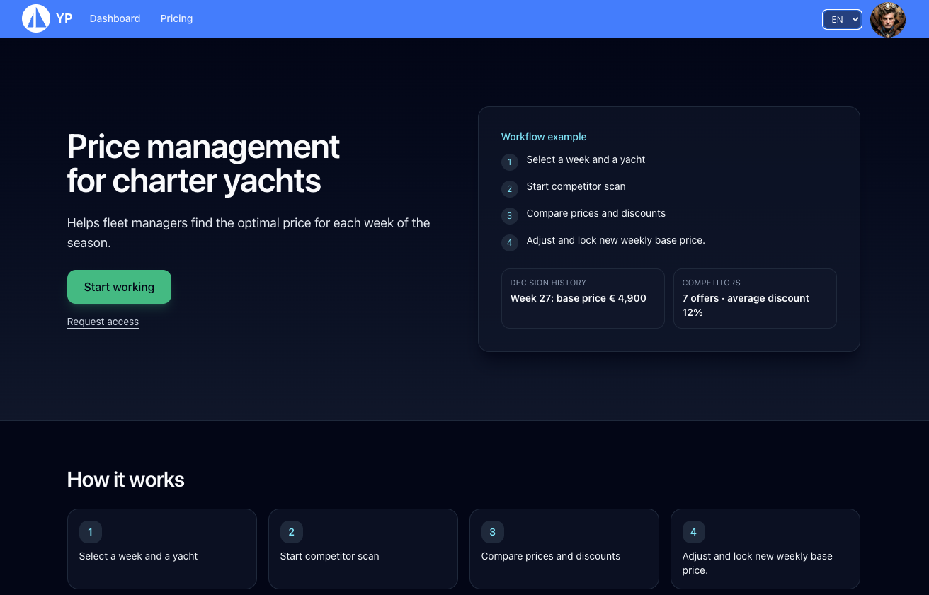YachtPricer — SaaS для динамического ценообразования в чартерных компаниях